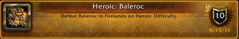 Knapp vor dem bevorstehenden hc-Nerf (bzw. der temporären Abschaffung der Hardmodes bis zum T13 Content) konnten wir endlych ( höhö ) - standesgemäß als Serverzweite - Baleroc im heroischen Modus bezwingen. Vor zwei Wochen ging uns der Firstkill bei einem 0,7% Wipe knapp durch die Lappen. Selbigen sicherten sich, ebenfalls standesgemäß, die Herren der Winde. Glöckwönsch!